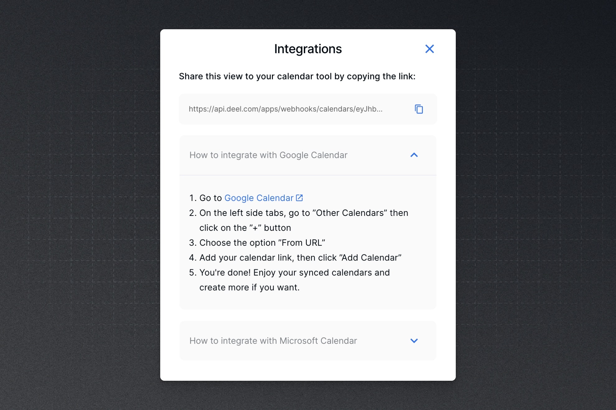 Integrate Deel with your Calendar and get automatic updates on key employee dates like PTO, start days, public holidays, and birthdays. No manual entry. No errors. Just a calendar that's always in sync with your team.